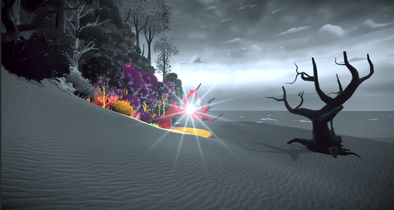 Using a ball that restores color, the player must color the black and white world around them to reactivate mechanisms and find a way through the levels.